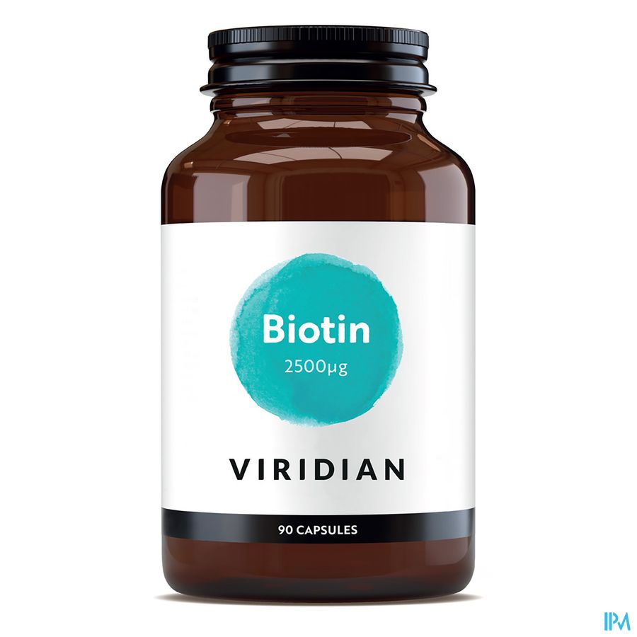Viridian Biotin 2500 Mcg V-caps 90 est un complément alimentaire disponible en pharmacie. Il ne peut se substituer à un mode de vie sain et à une alimentation variée et équilibrée. Ne prenez pas plus que la dose quotidienne recommandée indiquée sur l'emballage. Demandez conseil à votre pharmacien. Tenir hors de portée des enfants.