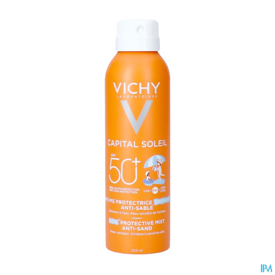 Le spray solaire Capital Soleil Kids SPF50+ Anti-Sable est une protection solaire pour enfants qui aide à empêcher le sable d'adhérer à la peau. Enrichi en eau volcanique de Vichy, ce spray solaire aide à hydrater la peau et à lutter contre les radicaux libres causés par l'exposition au soleil. Le spray ne colle pas, est agréable à appliquer et offre un fini sec qui permet d'éliminer facilement le sable de la peau sans qu'il ne colle.