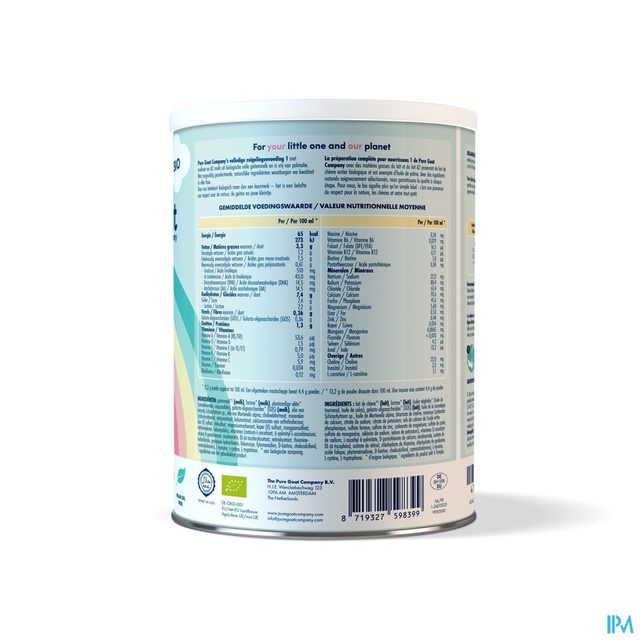Pure Goat Préparation pour nourrissons 1 est fabriqué à partir de lait de chèvre biologique et d'autres ingrédients biologiques. C'est une excellente alternative aux préparations à base de lait de vache.