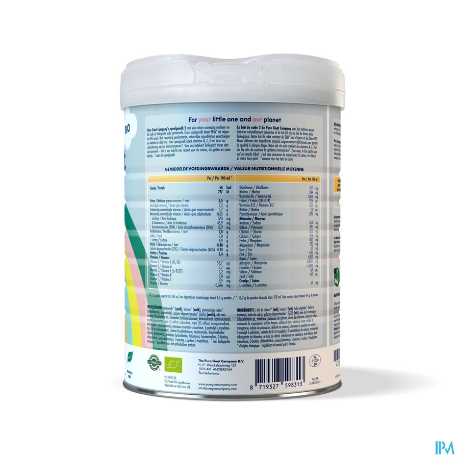 Le lait de suite 2 de Pure Goat Company convient aux nourrissons de plus de 6 mois et uniquement dans le cadre d' une alimentation variée. Biologique et fabriqué à base de lait de chèvre. Suivez toujours les instructions figurant sur l'emballage, sauf avis contraire de votre médecin.