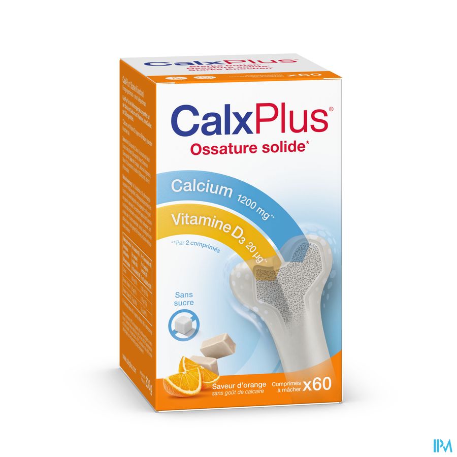 CalxPlus® est un complément de calcium sans sucre sous forme de comprimé à mâcher doux et savoureux, disponible en quatre goûts : chocolat, orange, fraise et vanille. Grâce à la combinaison optimale de calcium, de vitamine D3 et de vitamine K1, CalxPlus® contribue efficacement au maintien d'os solides et en bonne santé. Sa texture agréable et son bon goût facilitent la prise quotidienne, un facteur essentiel pour une bonne observance à long terme. La formule ne contient pas de conservateurs et convient aux personnes diabétiques, aux femmes enceintes et pendant l'allaitement. Deux comprimés à mâcher par jour suffisent pour couvrir les apports recommandés en calcium et en vitamine D.